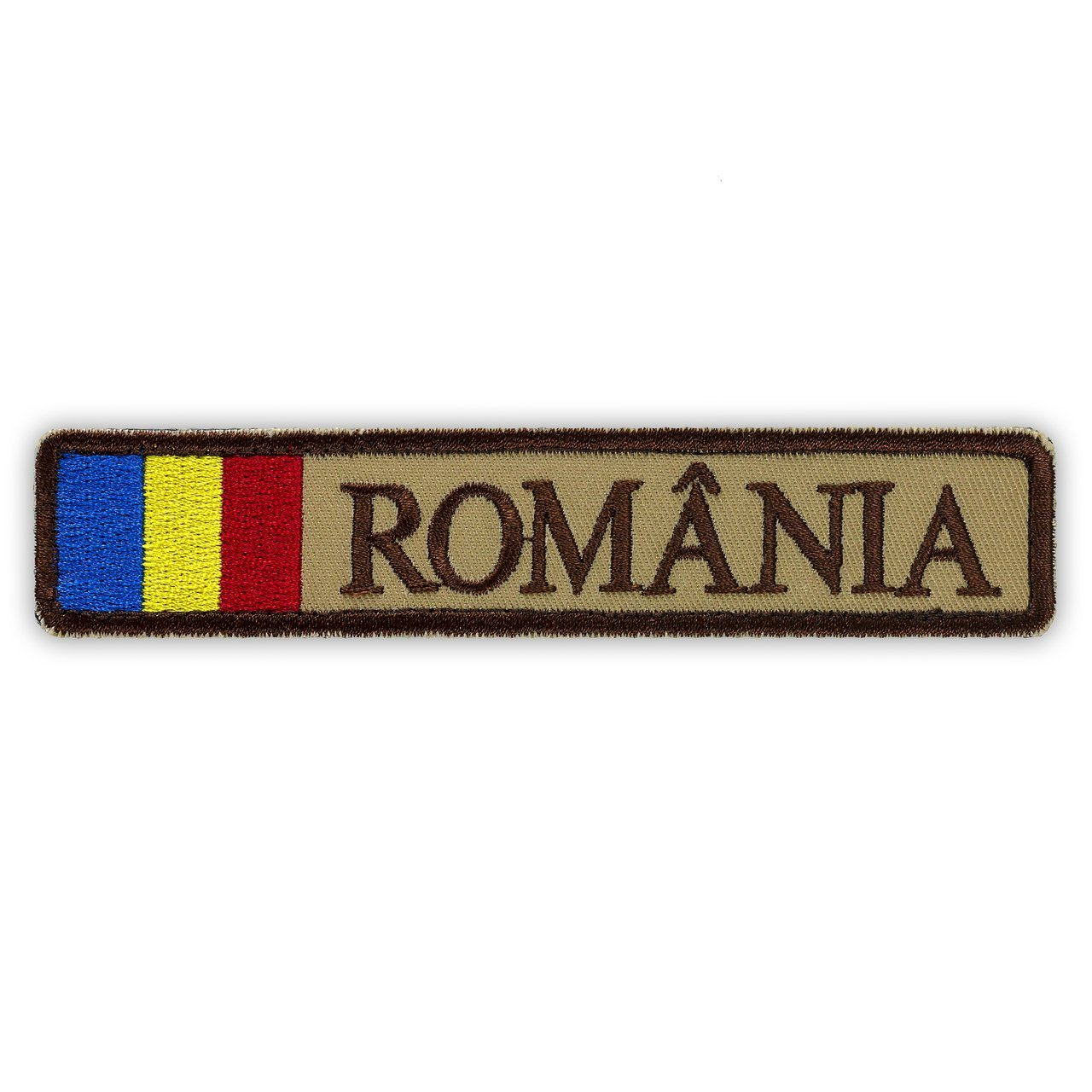 ECUSON ROMANIA CU DRAPEL BEJ FORTE TERESTRE12.5x2.5cm