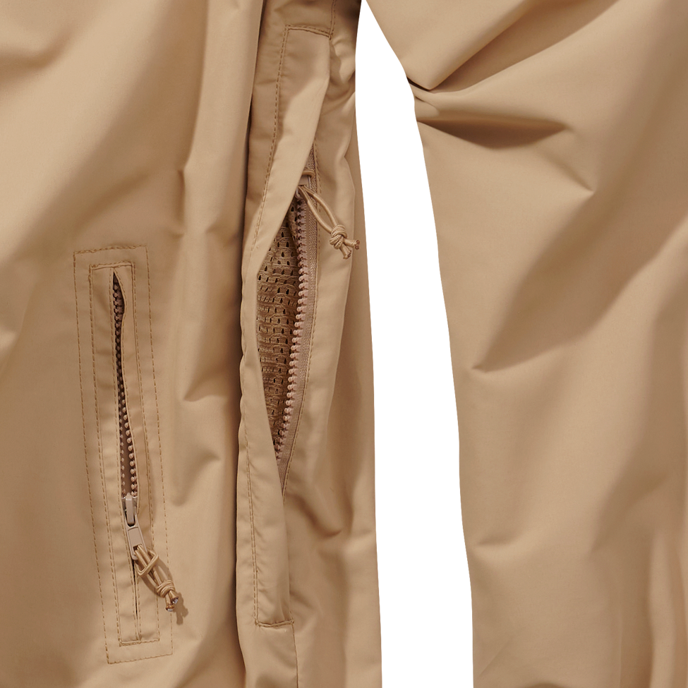 A külső poliészter szél- és vízállóságot biztosít. A poliészter bélés fokozza a kényelmet és jó légáteresztő képességet biztosít a bőr számára. A mandzsettákon és egyéb elemeken használt elasztikus pánt biztosítja a kényelmes illeszkedést és rugalmasságot.