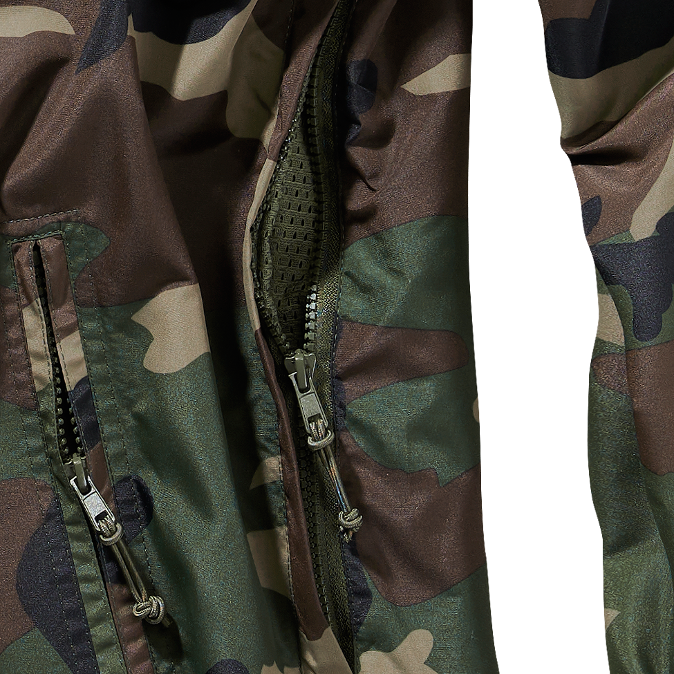 A külső poliészter szél- és vízállóságot biztosít. A poliészter bélés fokozza a kényelmet és jó légáteresztő képességet biztosít a bőr számára. A mandzsettákon és egyéb elemeken használt elasztikus pánt biztosítja a kényelmes illeszkedést és rugalmasságot.