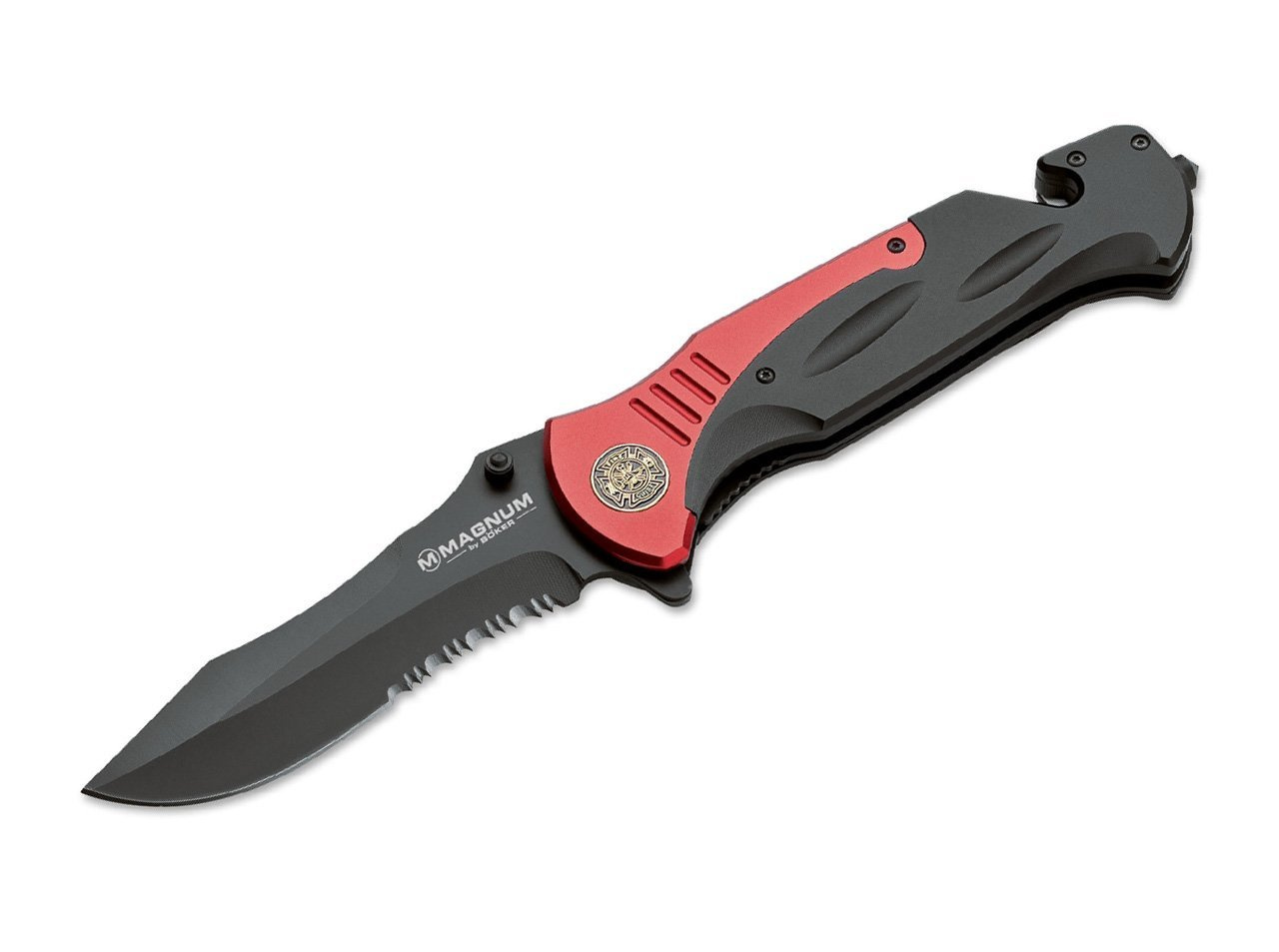 A Magnum Fire Chief egy lenyűgöző mentőkés, amelyet kifejezetten vészhelyzetekre terveztek. Részben fogazott pengével, biztonsági kalapáccsal és övvágóval ez a kés fel van szerelve a vészhelyzetek kezelésére. A stabil bélészár biztosítja a felhasználó biztonságát, a piros és fekete dizájn pedig megkönnyíti a mentőeszközként való azonosítását. A markolatba ágyazott arany embléma a kést a tűzoltóságok férfijainak és nőinek ajánlja. Csíptetővel. Fontos azonban megjegyezni, hogy ez a kés nem ajánlott mindennapi használatra vagy nehéz professzionális használatra. Ezekre a célokra a speciálisan erre a célra tervezett modellek, például a Boker Plus Savior vagy az FKMD A.L.S.R. 2 ajánlott.