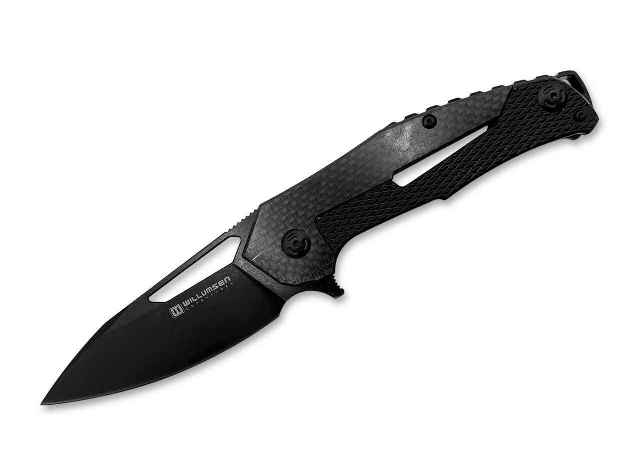 A Willumsen Chibs Midnight készen áll a következő kalandra. Elegáns, taktikai kialakítása tökéletes a durva anyagok vágásához, tükrös nyele pedig egyedi megjelenést kölcsönöz a késnek. A D2 fekete penge fedéllel nyílik, és a biztonságos keretzárral rögzül. A titánból és szénszálból készült fogantyú részben texturált, ezért biztonságos a kezében. Nyakpánt lyukkal és klipszel (fel-fel / fel).