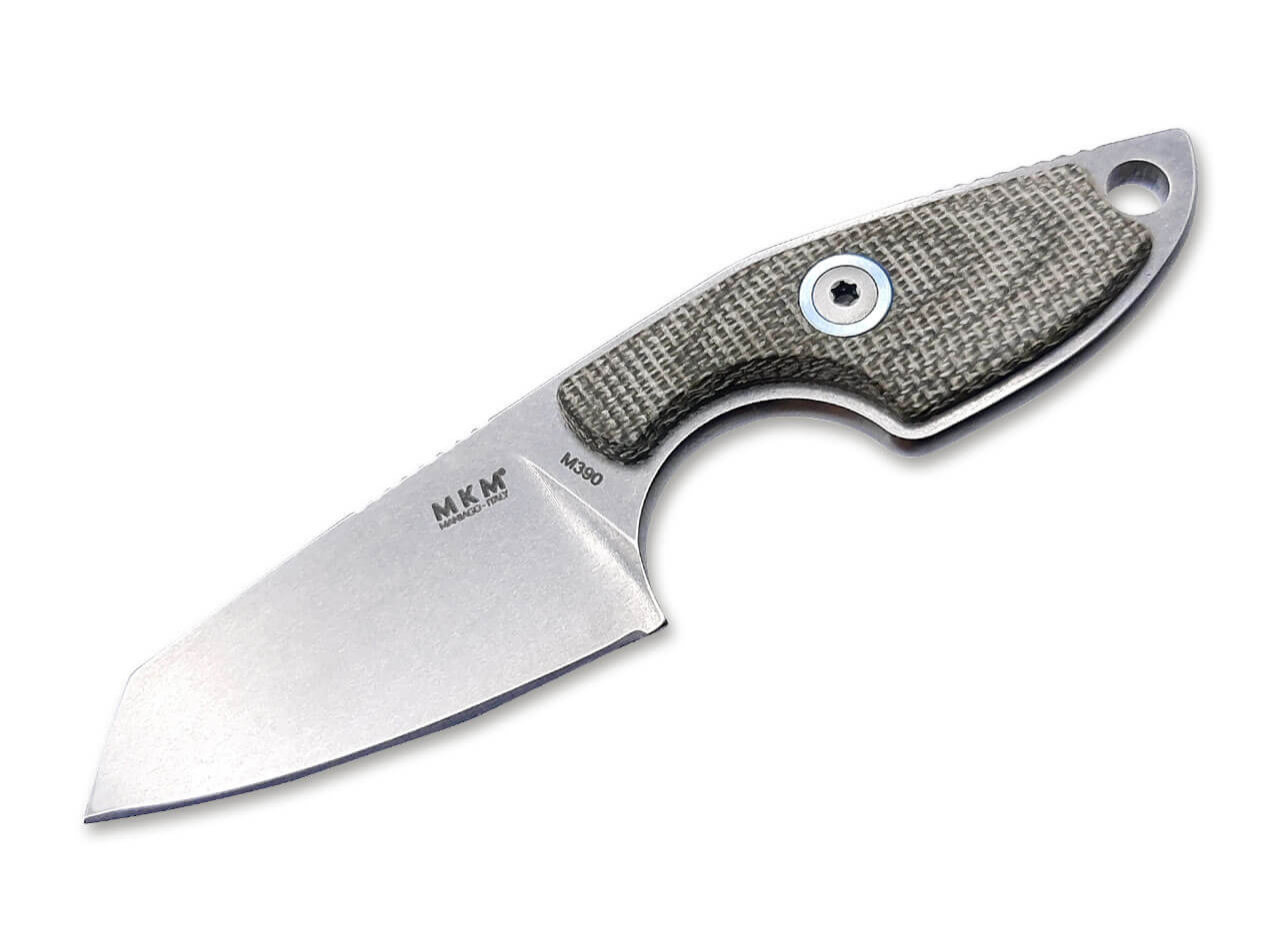 Az MKM Mikro 2 CF kicsi, de gyönyörű. A Jesper Voxnaes által tervezett nyakkésnek nagy szilárdságú Böhler M390-ből készült juhláb penge van. A szénszálból készült csúszásgátló fogantyú a nehéz vágási munkák során is biztonságosan fekszik a kézben. Kiváló minőségű bőr tokkal és zsinórral.