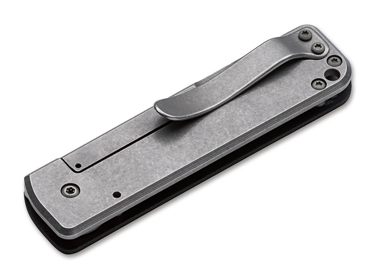 Kétkezes változatában a népszerű Boker Plus Lancer kőmosó D2-es pengével rendelkezik, amely körömdarabbal nyílik és erős keretes zárral van rögzítve. Serge Panchenko ukrán késmester terve kompakt, nagyon lapos és így könnyen hordozható. A masszív felépítés megnyugtató szilárdságot és masszivitást kölcsönöz. Az elülső fogantyú mérlege texturált G10, míg a hátsó része rozsdamentes acélból készült, és a keretes zárat tartalmazza. Nyakpánt lyukkal, kapoccsal (felcsavarható) és kiváló minőségű nejlon tokkal a tároláshoz.