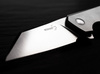 Philippe Jourget francia késkészítő híres rendkívül jól elkészített zsebkéséről, amelyet lépésről lépésre kézműveskedik. Sok tervéhez hasonlóan a Boker Plus Petit is egy vékony acélszerkezet, amely a praktikumra és az egyszerűségre összpontosít, ami nagyon hasznos a mindennapi vágási feladatokhoz. A golyóscsapágyak Wharncliffe pengéje D2-ből készült, és egy fedéllel nyitott. A rozsdamentes acél keretzárnak köszönhetően a kompakt kés szilárd felépítése ellenére nagyon lapos. A távtartó könnyű G10-ből áll, ami szintén csökkenti a teljes súlyt. Áthelyezhető klipszel (l / r).