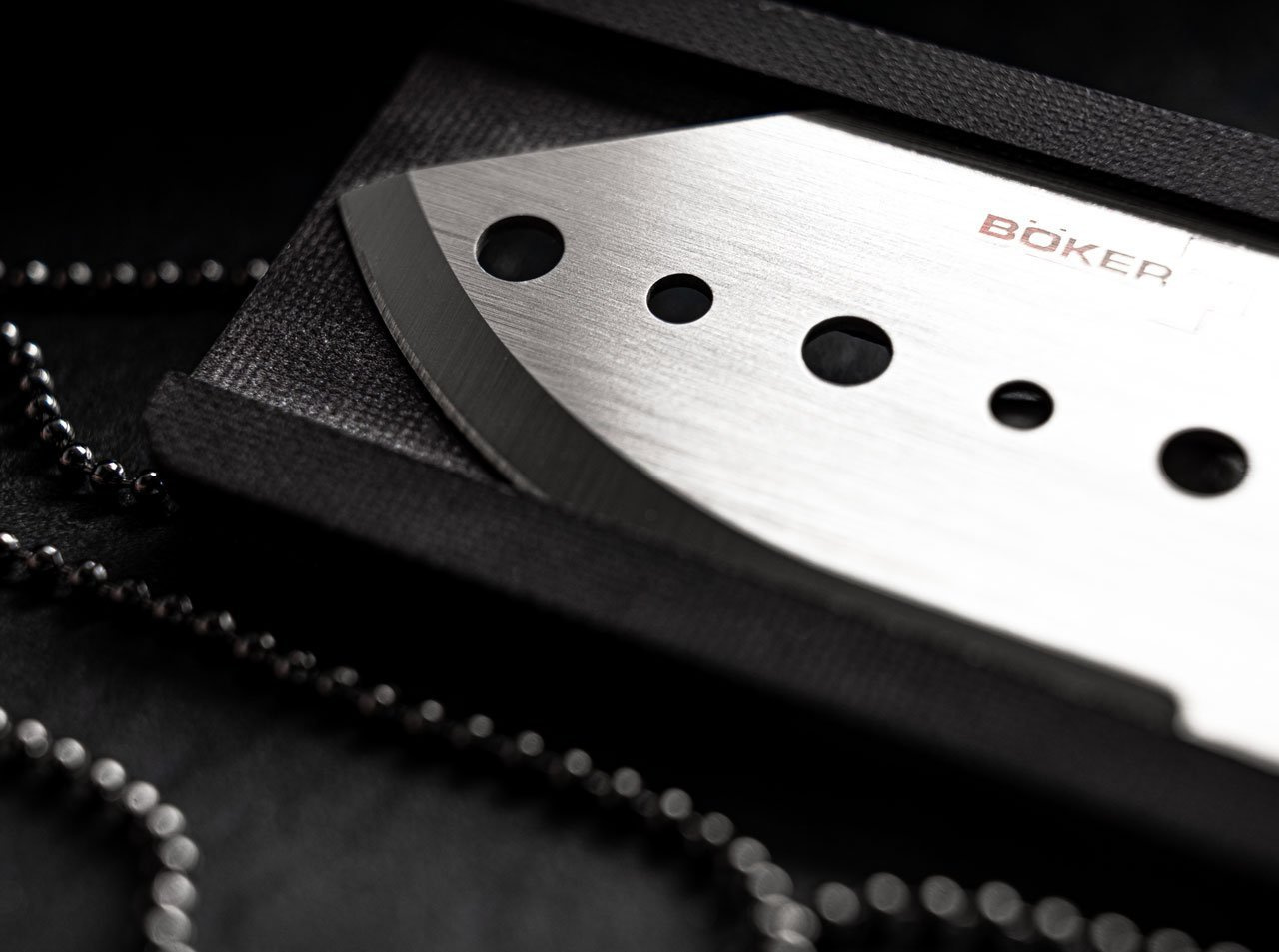 John Kubasek jól ismert szokatlan kialakításáról és gyakran rendkívül lapos felépítéséről. A Boker Plus Slyde-R ezt a koncepciót követi, meglepve egy úszó pengével, amelyet egy gombbal lehet kinyitni és kitolni a fogantyú elülsõ részébõl. A szokatlan kés ugyanazzal a gombbal van lezárva, ami nagyon egyszerűvé és intuitívvá teszi a kezelést. A szaténizált penge 440C-ből áll, és egyoldalas csiszolással rendelkezik, hogy tökéletesen illeszkedjen a G10 fogantyúba. Gömblánccal érkezik. Klip nélkül.