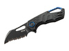 A rövid fogazott penge N690-ből készült, és tartós fekete bevonattal rendelkezik. Papucs vagy hosszúkás hüvelykujj lyuk nyílik, és béléses zárral van rögzítve. A fekete szintetikus anyagból készült csúszásgátló fogantyú texturált felülettel és ergonomikus formával rendelkezik, nedves állapotban is biztonságos fogást kínál. Megfordítható huzalkapoccsal (fel-fel / l-r).
