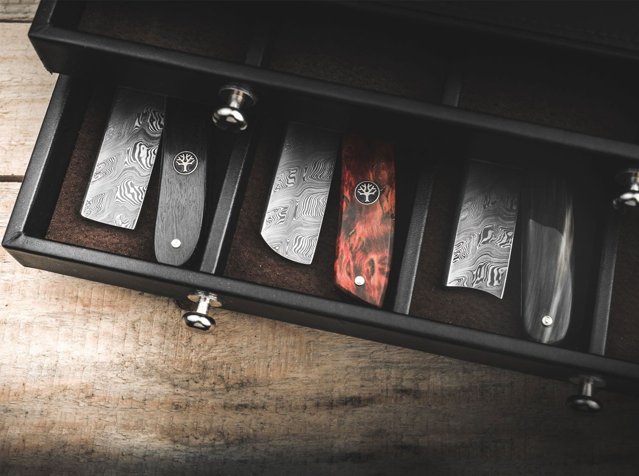 A nemes Boker Damascus Burl Birch fogantyúi a burl nyír fájából készülnek, amelynek őshazája Európa messze északi része. Ennek a fának a már különleges szemcséjét, amelyet különleges tulajdonságai miatt gyakran használnak rendkívüli modellekhez, a stabilizálás és a teljes színezés tovább kiteszi. A modern fogantyúforma tökéletesen illeszkedik a francia fejjel ellátott damaszkuszi acélból készült 6/8 hüvelyk széles pengéhez, amelyet a finom Boker fa embléma egészít ki, amelyet kézzel helyeznek a fogantyúba. Hiteles Boker lézergravírozással a pengejáratban, eredetiségigazolással és nemes lebegő kijelzővel. Kézzel készített a Boker Solingen manufaktúrában.
