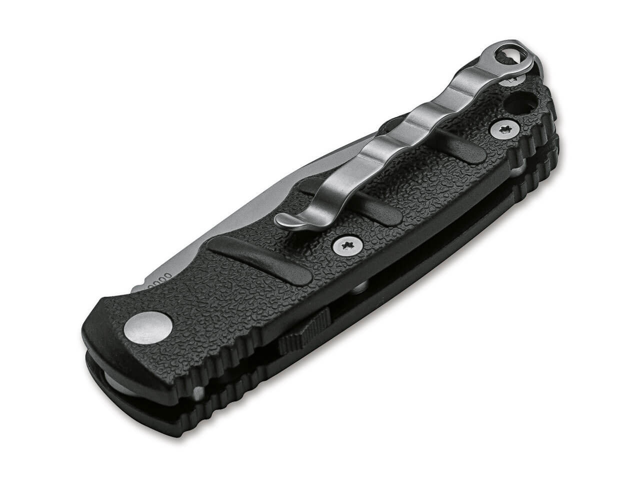 A Boker Plus AKS-74 Mini a Kalasnyikov sorozat népszerű mozdulókésének különösen praktikus változata. A fekete alumínium fogantyú erősen emlékeztet a híres rohampuska szuronyára, az emelt szerkezeti barázdák minden helyzetben biztonságos fogást is biztosítanak. A robbantott penge D2 rozsdamentes acélból készül, és a nyomógomb mellett csúszó zárral is rögzíthető. Nyakpánt lyukkal és praktikus kapoccsal (fel-fel / fel).