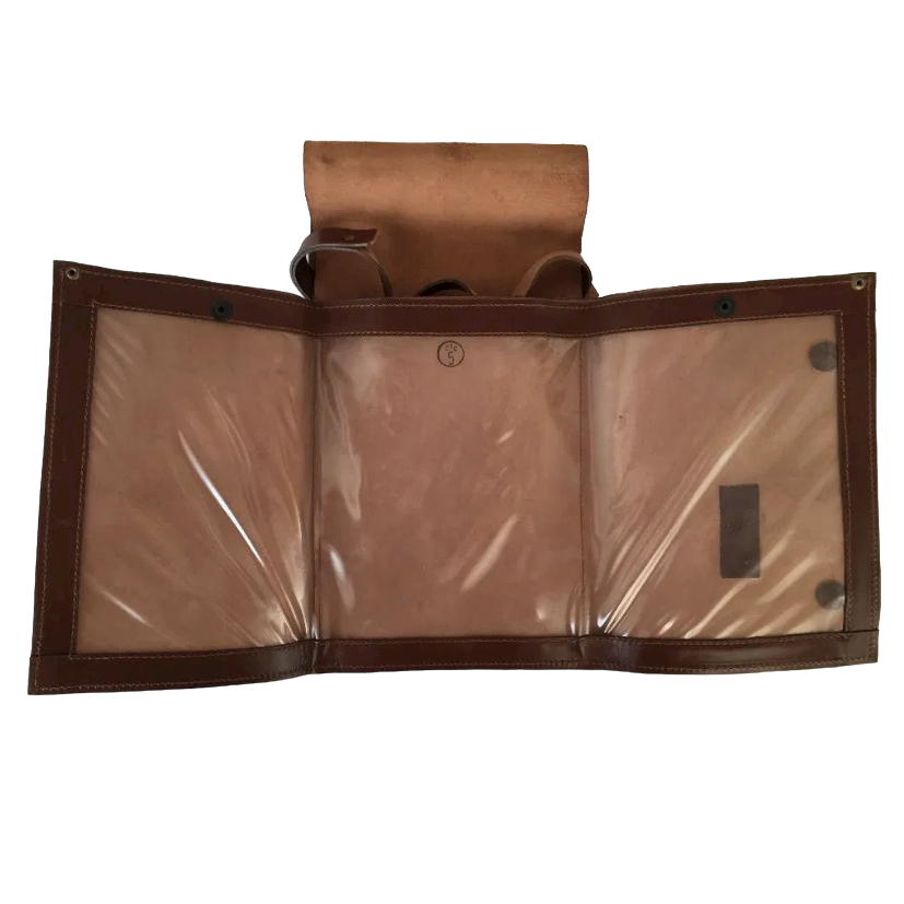 Vastag, kiváló minőségű műbőrből készült. Soha nem használták, és nagyon jó állapotban van. A táska a csoportparancsnoknak/osztagnak/századnak/stb. adott felszerelés része volt térképek, iránytűk és különböző dokumentumok tárolására. A táska füzetek, könyvek és egyéb iskolai felszerelések szállítására is használható olyan túrák során, ahol a térképek használata szükséges. A táska anyaga vagy színe a valóságban eltérhet.