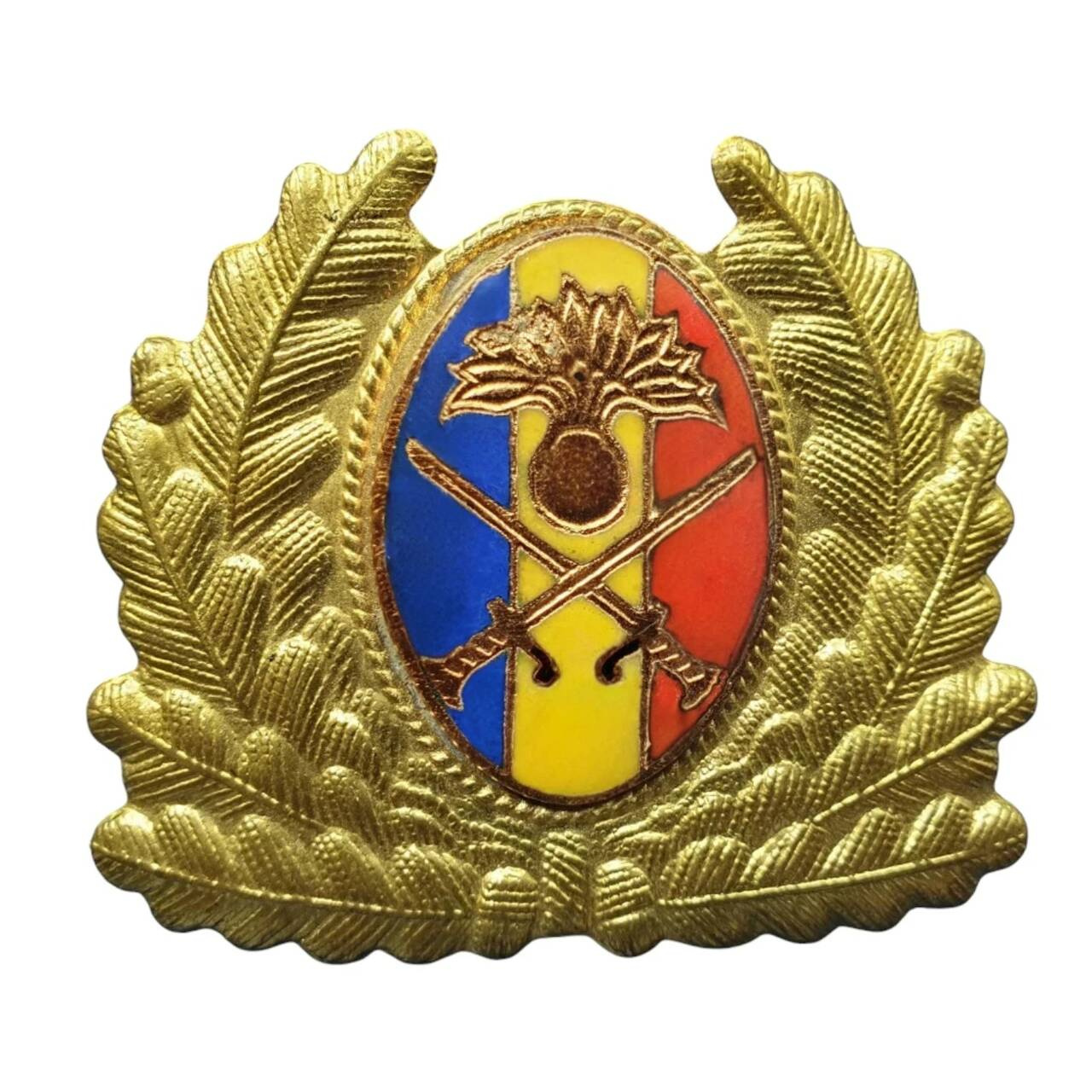Vintage román katonai hadsereg lovasság hidegháborús sárgaréz zománc kokádcsap, gyűjthető csap, gyűjthető csap, szocialista kommunista tű