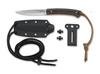 Az Alan Folts által írt rögzített kés egyszerre lenyűgöző könnyű felépítésével és nagy stabilitásával. A 8Cr13MoV-ból készült, szatén felületű lapos talajú penge részleges hullámzással rendelkezik a penge hátsó részén, így a kés könnyen használható a nehéz vágási munkákhoz. A G10-ből készült fekete fogantyú biztonságosan fekszik a kézben, és barna csíkokkal van kiemelve. Nyakpánt lyukkal, barna zsinórral és műanyag tokkal.