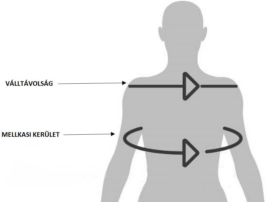 Annak érdekében, hogy az Önre tökéletesen illeszkedő terméket választhassa ki, kérjük, adja meg a termékkód alatti mezőben a mellkasi kerületét és a válltávolságot centiméterben. A mérések helyes helyeit az alábbi képen láthatja. Ezek a testméretek, nem a ruhadarabok méretei. Javasoljuk, hogy a lehető legpontosabb mérések érdekében a méréseket az alsónemű felett végezze el.