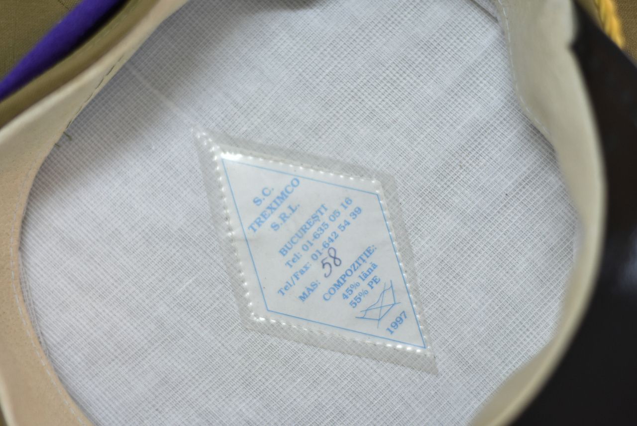 Klasszikus sapka altisztek számára az intendencia egységeiben, a román katonai és rendvédelmi intézmények egyenruha szabványai szerint készült. Kifejezetten dísz- vagy ünnepi öltözethez használatos, kiemelve a viselő rangját és feladatkörét.