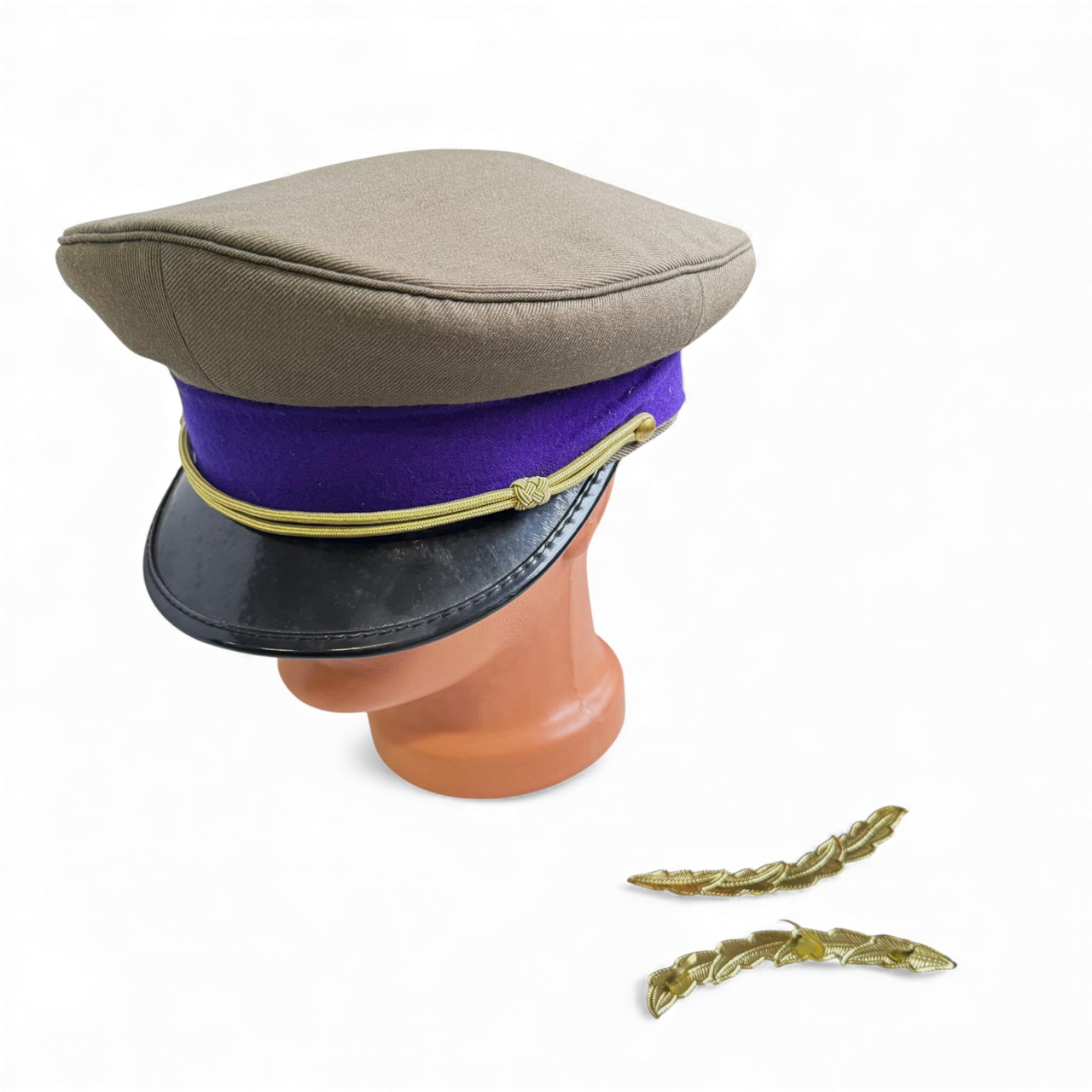 Tiszti Altiszt Sapka – Intendencia – Ünnepi Modell Arany Hímzéssel és Zsinórral – Román Hadsereg Katonai Felesleg – Lila/OD Zöld – Jó Állapotban