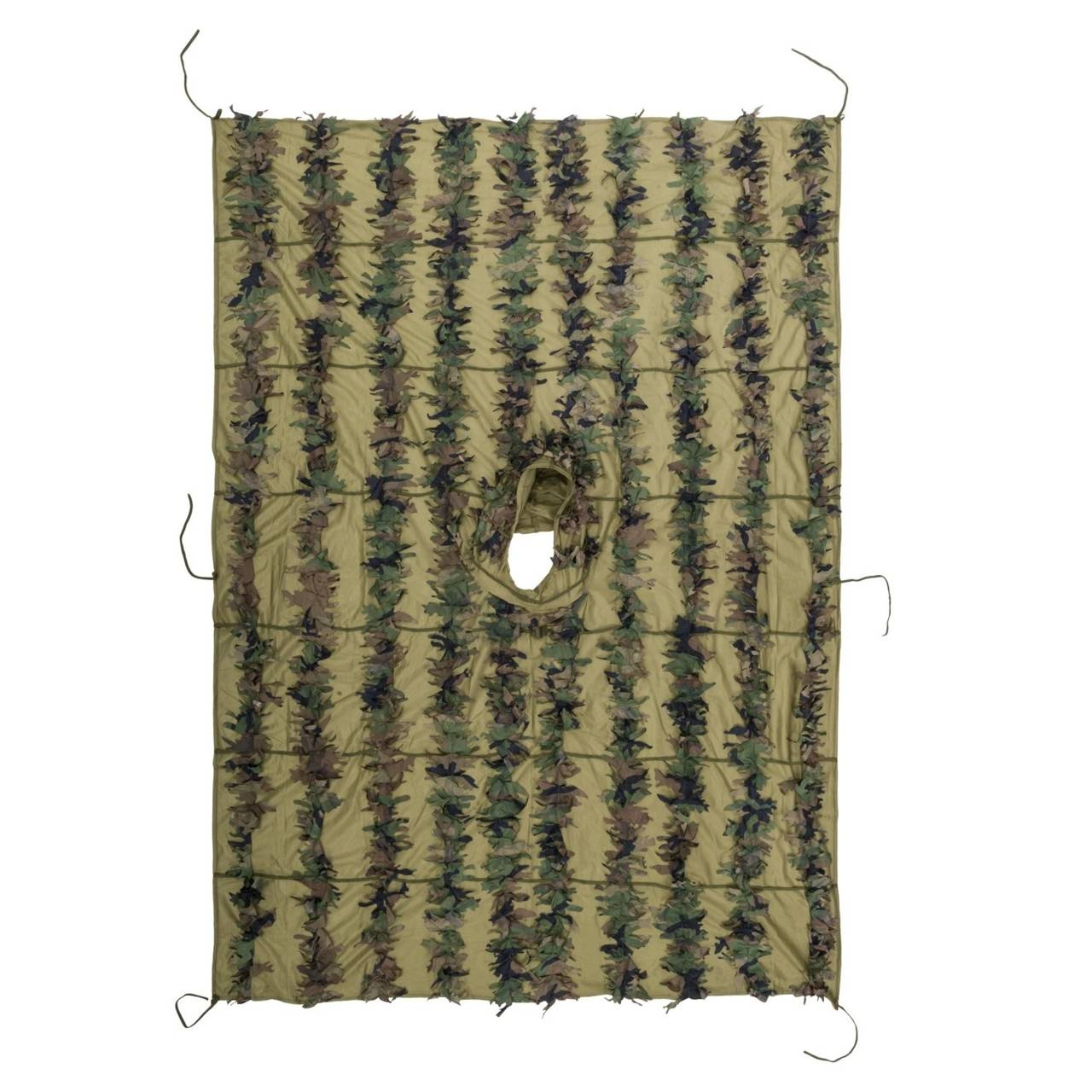 • Könnyű hálóból terepszínű poncsó, felületére varrt műlevelekkel, könnyű, légáteresztő, nedvességálló, összenyomható, táskával.