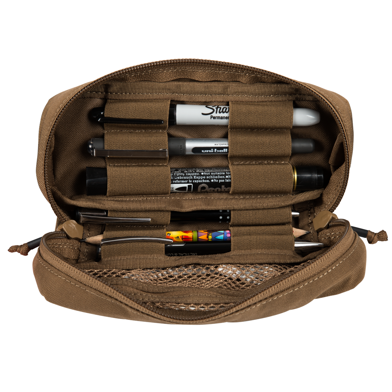 Még az iskolában is néha fájdalmasan tudatában vagyunk annak, hogy az irodai kiegészítők, különösen az íróeszközök, mint például a ceruzák, tollak és filctollak, a mindennapi használatban leginkább használt tárgyak. Ezért terveztük ezt a tollat nagyon praktikus módon, betétként. A tépőzáras rögzítőpanelnek köszönhetően bármilyen táskába vagy hátizsákba integrálható, amely a Versatile Insert Systemet hordozza, a tépőzáras csíkok összehajtásával pedig önálló tárgyként is szolgálhat. A tartozékokat elasztikus hurokkal rögzíthetjük, a kisebb darabokat pedig egy kis belső hálós, cipzáras zsebben is tarthatjuk.
