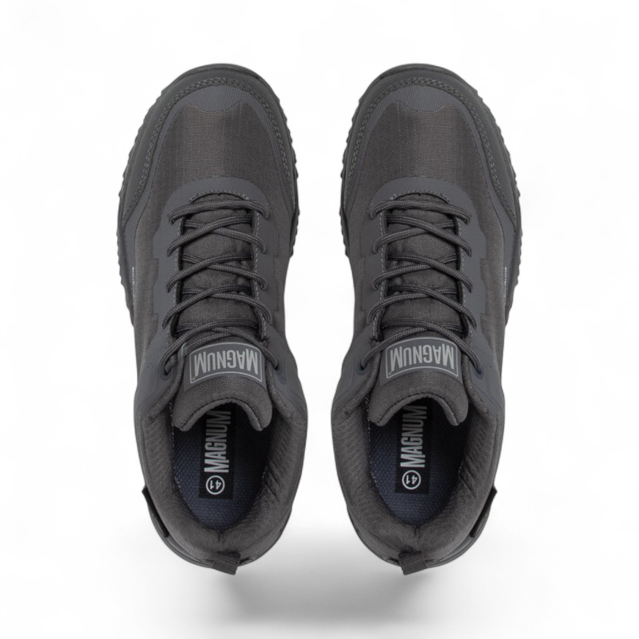 A Magnum® kiváló minőségű taktikai cipő modern dizájnnal, rendkívül tartós, strapabíró és vízálló anyagok keverékéből készült, tökéletes választás mindennapi, egész éves, szolgálati, taktikai viseletre, túrázásra, kirándulásra vagy túrázásra.