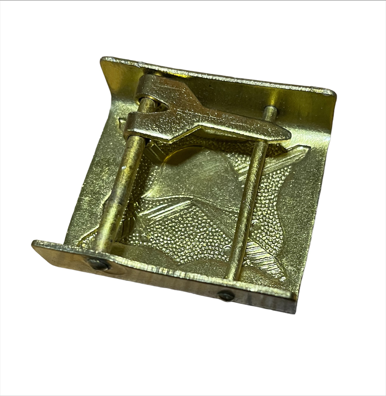 KATONAI ARANYSZINU ÖV CSATT - ROMÁN HADSEREG FELESLEG - MINT ÚJ. Az öv csatt a román hadsereg készletéből származó katonai felesleg, nagyon jó állapotban, mintha új lenne.