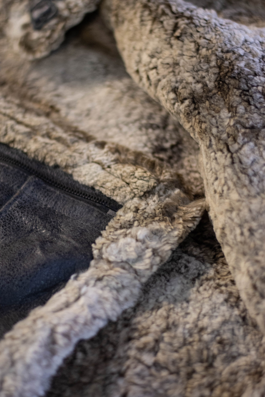 Katonai feleslegből származó termék. Hosszú távú tárolásból és korábbi használatból eredő nyomok előfordulhatnak. A külső bőrön lehetnek karcolások, kisebb szakadás, lyukak vagy egyéb kopás jelei, a fém alkatrészeknél (csatok, cipzár) rozsda előfordulhat. A cipzár húzója és a csat hiányozhat. Emellett gyártási tételek között lehetnek eltérések a szabás, a színárnyalatok vagy a kiegészítők tekintetében. A belső szőrzet finom szálai a kezeléstől enyhén meglazulhatnak, ami a vintage tárgyaknál megszokott jelenség.