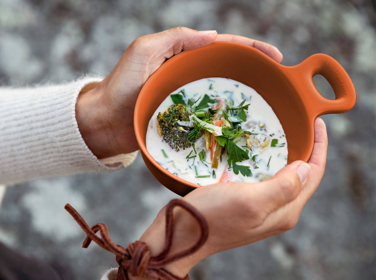 A Kåsa egy hagyományos svéd tál, amely sokféleképpen használható. Mind csészeként, mind levesestálként sokféleképpen gondoskodik a testi jólétről. A Light My Fire újraértelmezi a Kåsa-t, és a barna csészét növényi alapú szerves műanyaggal látja el, amely mosogatógépben és mikrohullámú sütőben is használható. A praktikus lyuk a fogantyún a hátizsákhoz vagy az övhöz való rögzítésre szolgál. A BPA-mentes bögre kb. 300 ml-t tartalmaz.