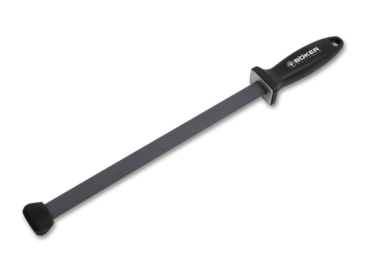 A közepes szemcsézettségű kerámia élezőrúd bármilyen típusú acélpengés kés élezésére alkalmas. Az ilyen típusú rudakat jellemzően szakácskésekhez használják. A technikai kerámia egy törésálló ovális acélcsőre van felhordva. A tényleges felhasználható hosszúság 25 cm. Tartós fekete műanyag nyéllel és akasztáshoz szükséges gyűrűvel szállítjuk.