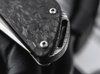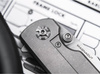 A központi szerkezeti különbség az M4 damaszkuszi modellhez képest a kontúrokba elegánsan integrált flipper, amely lehetővé teszi, hogy a penge egy kis impulzussal simán szétcsússzon, és játékra invitál. A golyóscsapágyas pengét felváltva egy hüvelykujjas csapszeg nyitja, és egy masszív, kőmosott felületű titán keretzárral zárja. A túlhajtásgátló a zár túlhúzás elleni védelmeként működik. A maratott titán klipsz (tip-up/r) acélgolyóval, valamint a vad karbonszálból készült markolati pikkelyek teszik teljessé a harmonikus összképet.