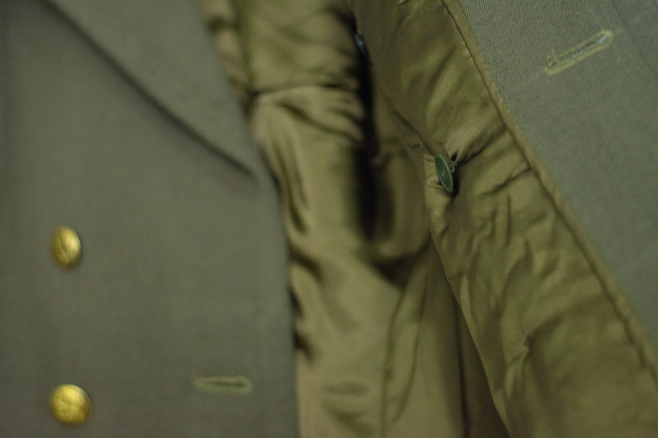 GYAPJÚ KABÁT - ROMÁN KATONAI FELESLEG - OLÍVA - HASZNÁLT
