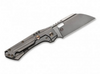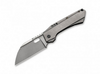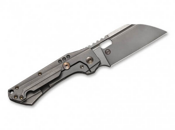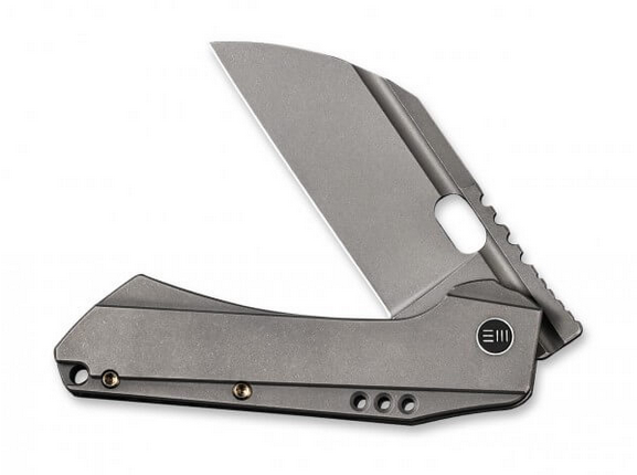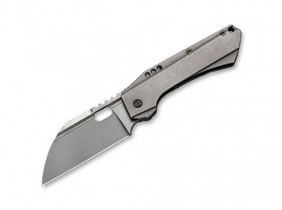 A masszív WE Knife Roxi kétségtelenül pontot szerez a CPM-S-35VN porkohászatból készült juhláb pengével és a rusztikus, kővel mosott megjelenésű titán fogantyúval. A mindennapi hordozhatóságú Framelock mappa hüvelykujjas szegeccsel nyílik, és néhány dekoratív elemmel rendelkezik, mint például egy vájat és súlycsökkentő lyukak a markolatban. Ventilátoros pántszíjhurokkal és klippel (tip-up/r).