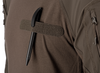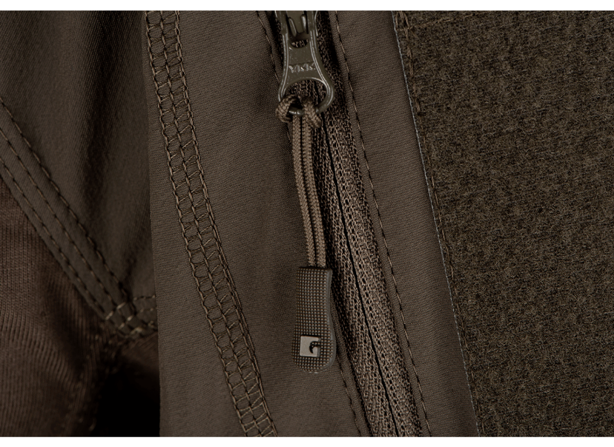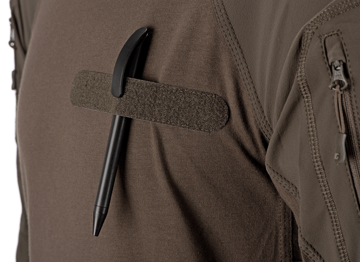 A nagyon ellenálló, rugalmas és vízlepergető anyagból készült ujjak technikai kialakítása rendkívül nagy mozgásszabadságot biztosít. A két felsőkarzseb elegendő tárolóhelyet biztosít, míg a hurokfelületek helyet biztosítanak az azonosító jelvényeknek és egyenként két rekesznek az írószerek számára.