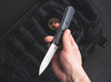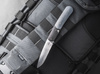 Stan Moizis kibontja a Driver-t és egyértelmű állítást tesz a Böker Plus DogLeg Auto-val. A 4 hüvelykes automata kése D2 csepppontos pengére cserélődik, finoman kidolgozott hairline felülettel, így a vágás tiszta formalitássá válik. A zsebkés a Böker klubházán kívül is jó viselkedést mutat a karcsú sziluettjével, amit a fekete rozsdamentes acél és szürke G10 két részre osztott markolat hangsúlyoz. A kés nyitását és zárolását szolgáló gomb egy mélyedésben található a metsző él előlapján, amely emlékeztet egy golfpálya ikonikus görbületére és egy kutya lábára. A diszkrét drótvégű klip (Tip-Up/r) és egy elegáns filc tok segítségével a DogLeg Auto egyenesen a lelkes késkedvelők jutalmazás központjába talál.