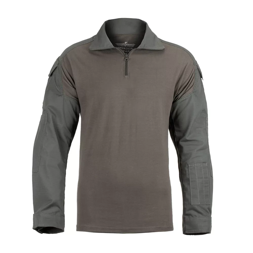 Az Invader Gear Combat Shirt kiváló ár-érték arányt és magas színvonalú minőséget kínál. Az inget általában a testpáncél alatt viselik, és úgy tervezték, hogy megakadályozza a nyomásnyomokat és jó nedvességelvezető képességet biztosítson. A modern szabás jól kiegyensúlyozott, hogy ne legyen sem túl szoros, sem túl laza. A gallér minőségi YKK cipzárral van ellátva, és a törmelék behatolásának elkerülése érdekében nyitva vagy zárva is viselhető. A nagyméretű vállzsebek gyors és kényelmes megoldást nyújtanak a tárolásra. A könyökrész egy extra anyagréteggel van megerősítve, amely egyben rekeszként is szolgál a könyökvédők számára. Az ujjvégek szélessége teljes mértékben állítható.