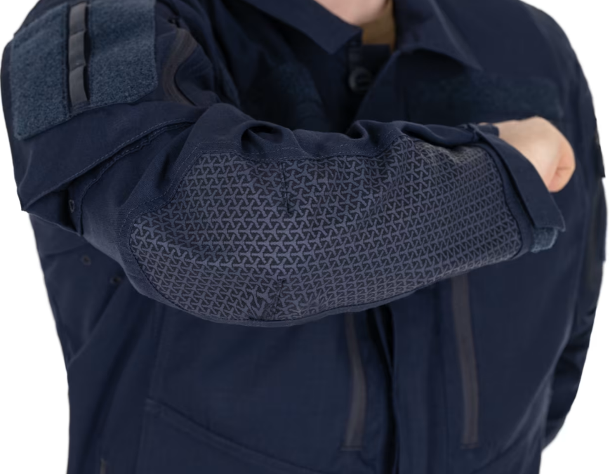 A külső felső ujjon pliszírozott zsebek, VELCRO® hurokfoltok és hevederek találhatók IFF, V-Lite® jelzők vagy egyéb egységtárgyak rögzítésére.