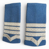A katonai rangjelzés csőszerű, egyenetlen végű, gyapjú paspoalból készült textil hordozóra készült, ezüstszállal hímzett csőszerű ujj formájában készültek.