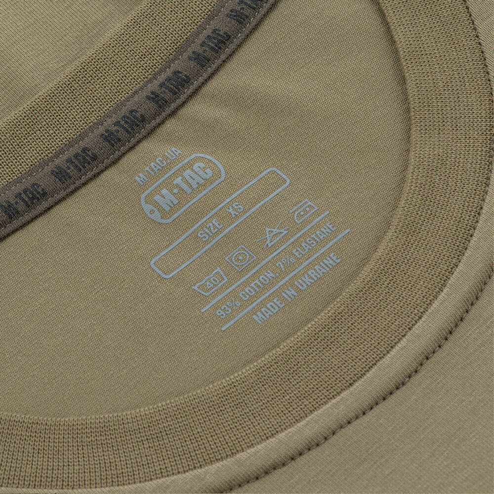A póló hátoldalán egy stilizált terepszínű felirat is található Military&Tactical Since 2014. A méltóság forradalma idején született meg az ötlet, hogy létrehozzanak egy ukrán márkát, amely a hadsereg és a különleges erők számára szabja és gyártja a taktikai ruházatot. Azóta a márka aktívan fejlődik, és az M-Tac ruházat és felszerelés többször is kiállta a próbát a jelenlegi idők legégetőbb pontjain.
