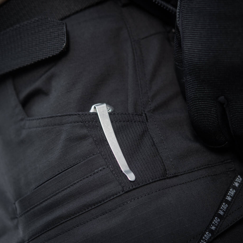 A megerősített betétekkel ellátott, kényelmes oldalzsebekben rengeteg szükséges dolgot helyezhet el. A minőségi bútorzat az YKK cégtől származik. Ez a modell rugalmas "alagút" derékszíjjal rendelkezik, amely kényelmes derékszabályozással rendelkezik, és legfeljebb 5,5 hüvelyk széles derékszíjjal viselhető.