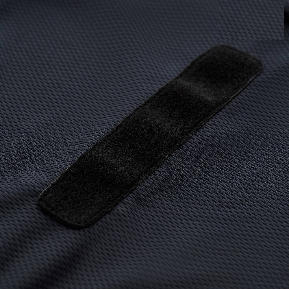 A póló anyaga Coolmax®; más szövetekkel ellentétben nem szívja magába a nedvességet, hanem párolgás útján továbbítja azt. Ez lehetővé teszi a kívánt hűsítő hatás elérését. Ennek eredményeként az anyag könnyű és rugalmas marad, miközben a bőr száraz és meleg marad. A póló teljes területén antisztatikus szál található, amely segít a statikus töltés kiáramlásában a szövet felületéről.