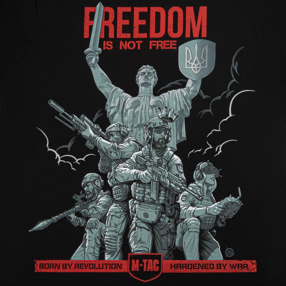 Az új FREEDOM témájú póló az ukrán nép erejét, bátorságát és fékezhetetlenségét hirdeti.