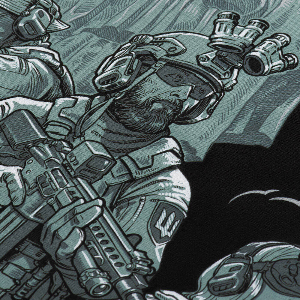 A nyomat a hadseregünket ábrázolja. Akik a háború első napjaitól kezdve a „világ második hadseregét” pusztítják. Tetteik megváltoztatják a világot. Mindegyikük egy-egy hős. A katonák mögött az anyaország áll - az anya, az ukrán nép megtörhetetlenségének szimbóluma. Pajzsa megvéd az ellenséges golyók ellen, kardja pedig méltó visszavágást ad az ellenségnek. Nyugodt és rendíthetetlen, olyan, mint minden ukrán honvédő. Nemtől, kortól és foglalkozástól függetlenül egy nagy cél - a győzelem - egyesíti őket.