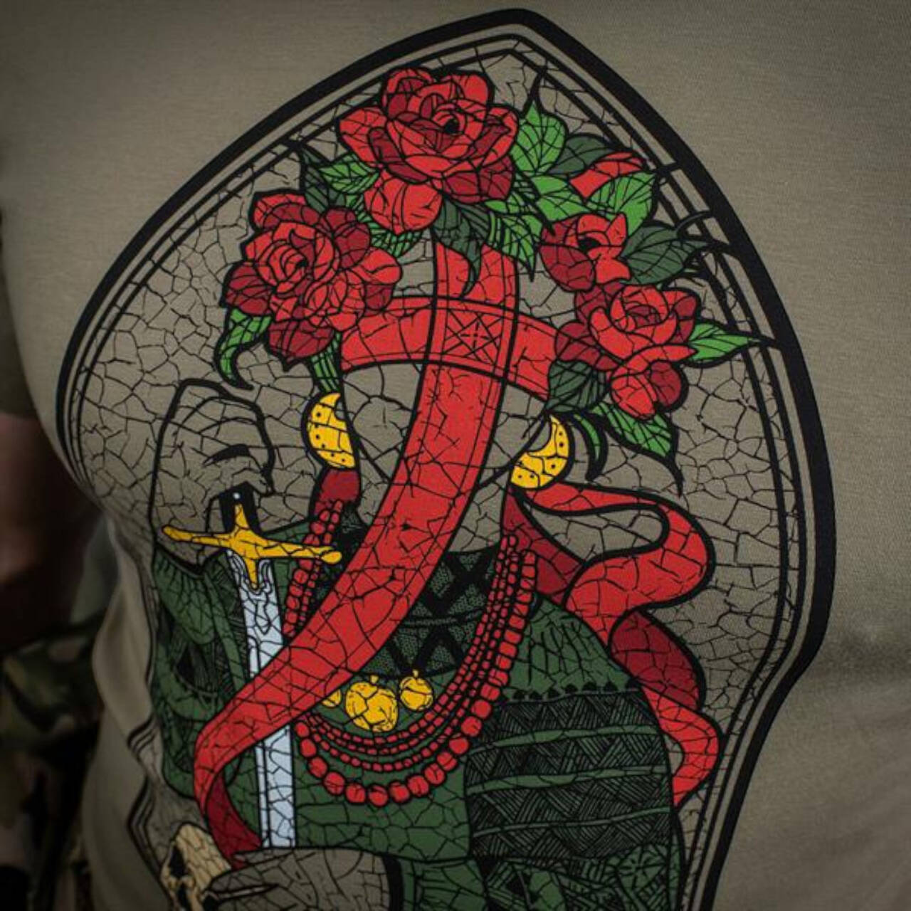 A póló hátulján az „M-TAC. Terra Cosaccorum”. A Terra Cosaccorum (lat. „kozák föld”) az egykor Európában elterjedt ukrán föld latin neve.