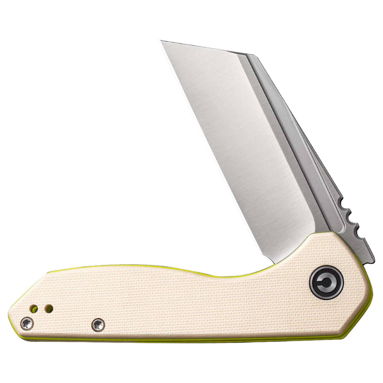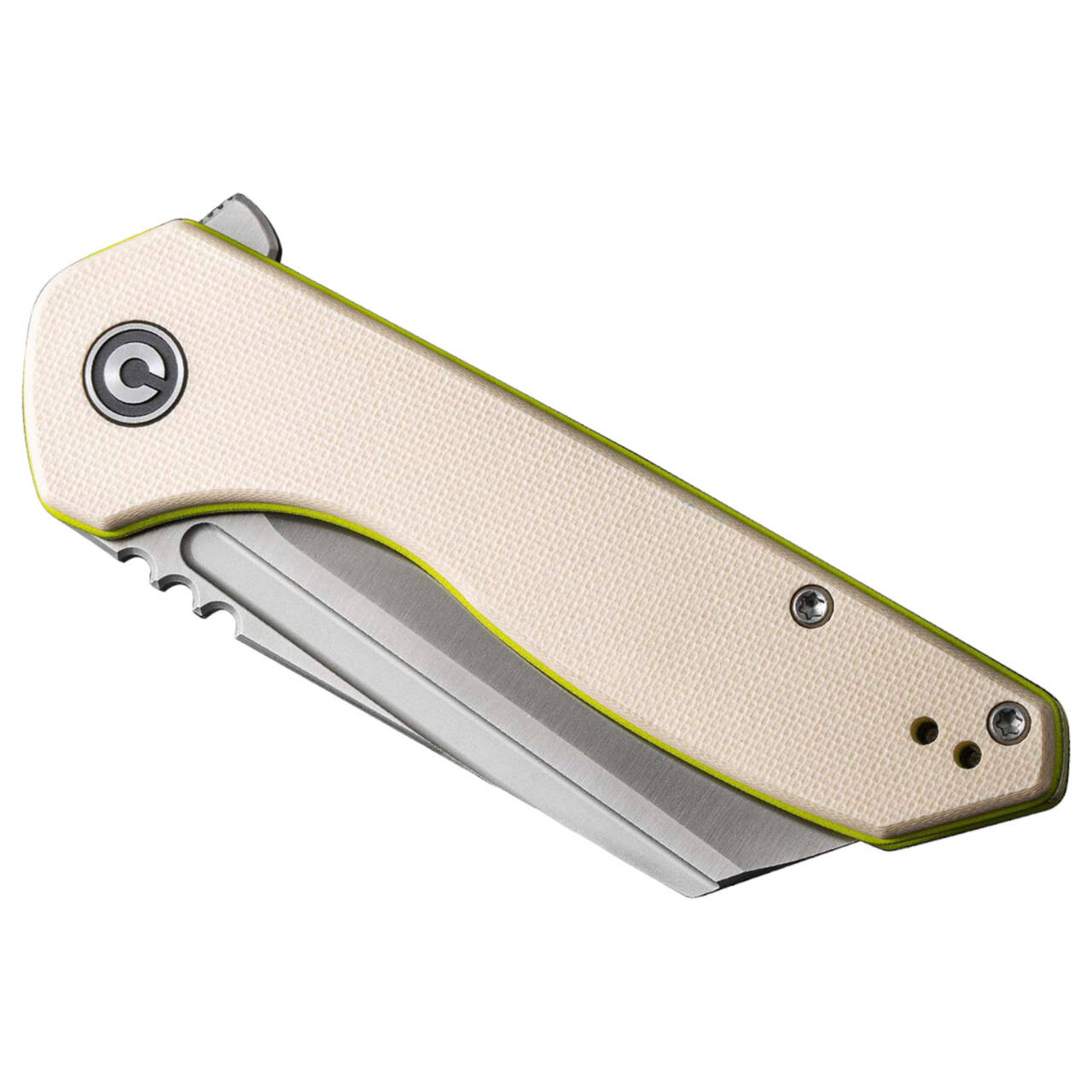Az egyetlen, ExOne. A CIVIVI a zsebkést Nitro-V szatinált felületű, fordított golyóscsapágyazású tanto pengével szereli fel, hogy a mindennapi vágás élmény legyen. Az EDC mappa flipperrel vagy szögbevágással nyitható, míg a zárást a liner lock kezeli. A penge hátoldalán található Jimpings jobb irányíthatóságot biztosít és növeli a biztonságot a munka során. A texturált G10-ből készült krémfehér markolat mindenkor biztos fogást garantál. Megfordítható tip-up klippel.