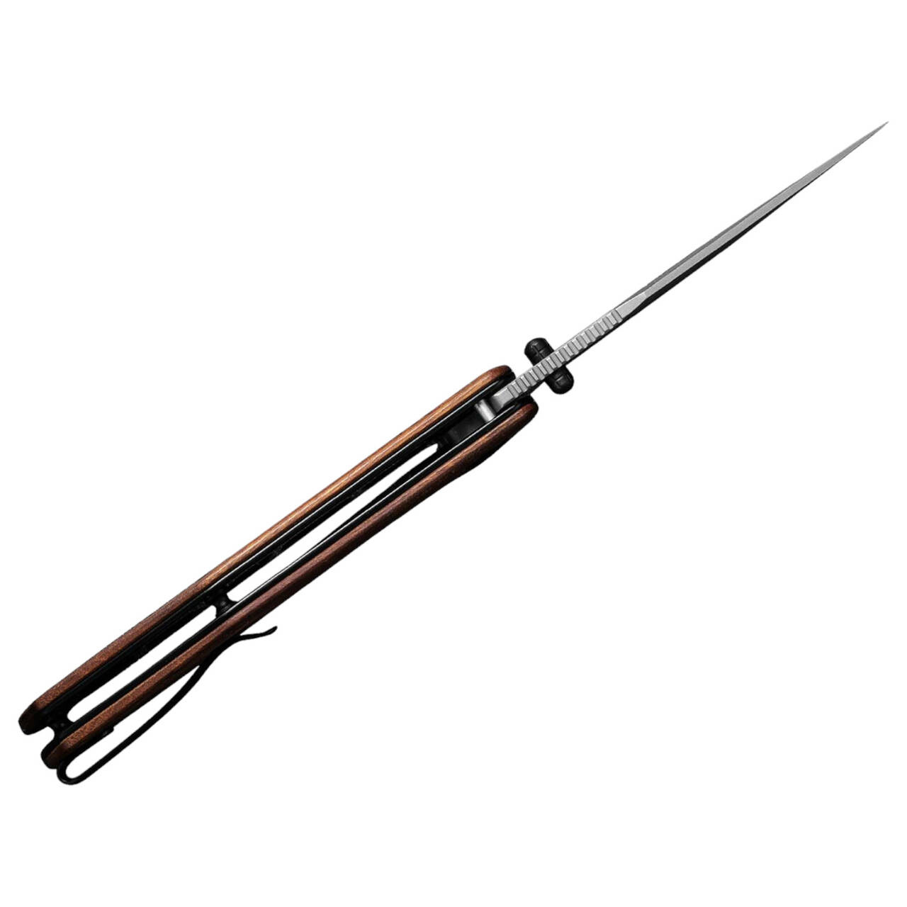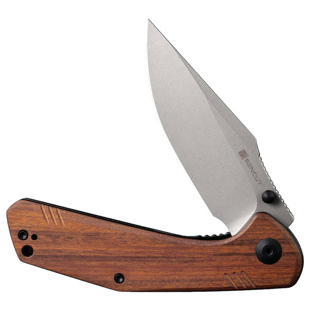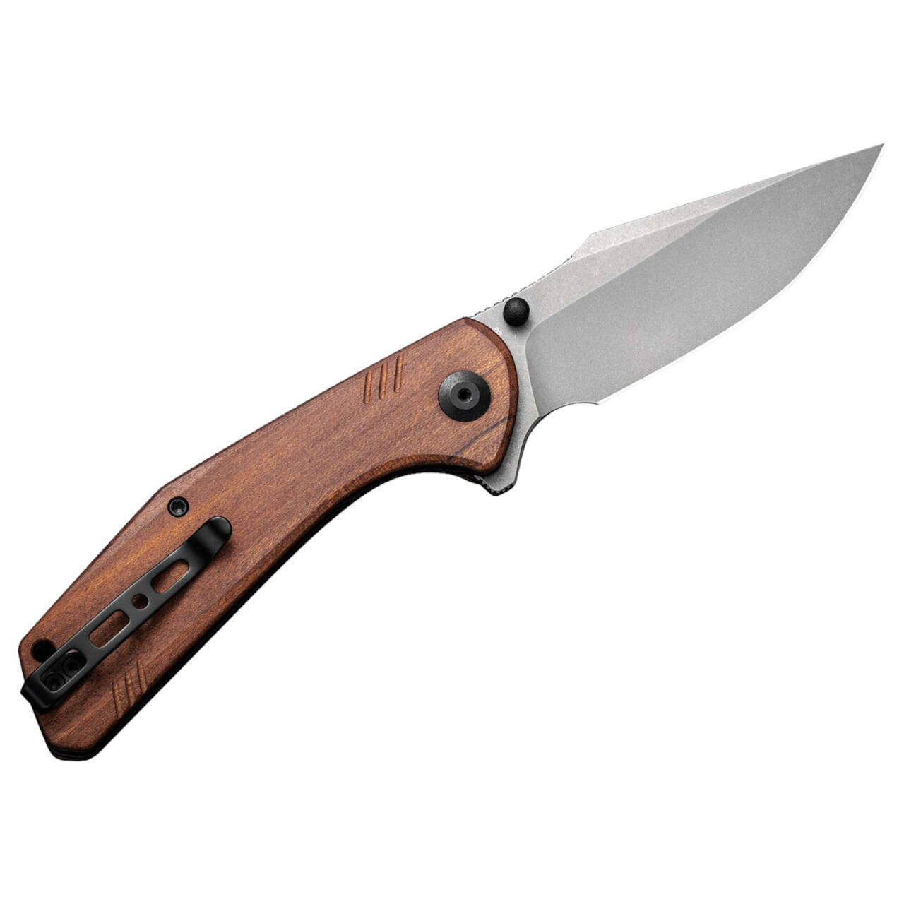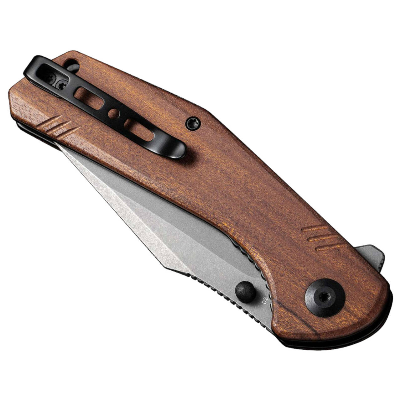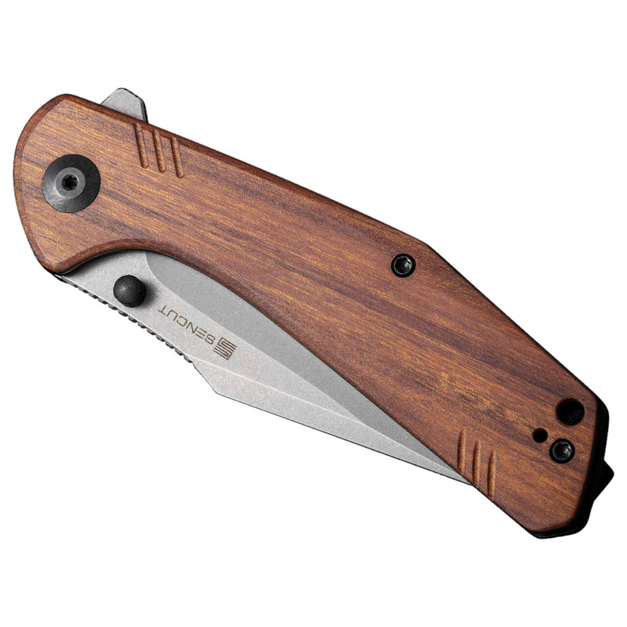 Actium = reakció. A SENCUT ezzel az egyszerű képlettel írja le a D2 éles penge és a kőmosott fekete felületű D2 penge, valamint a vágókötelek, dobozok vagy csomagolóanyagok közötti kölcsönhatás elvét. A zsebkés csapágyazottan nyílik flipperrel vagy hüvelykujjas csapszeggel, és robusztus bélészáras mechanizmussal záródik. A guibourtiafából készült ergonómikus fogantyúskálák minden körülmények között szilárd tartást biztosítanak. Nyakkendőnyílással és megfordítható, felfelé fordítható klippel.