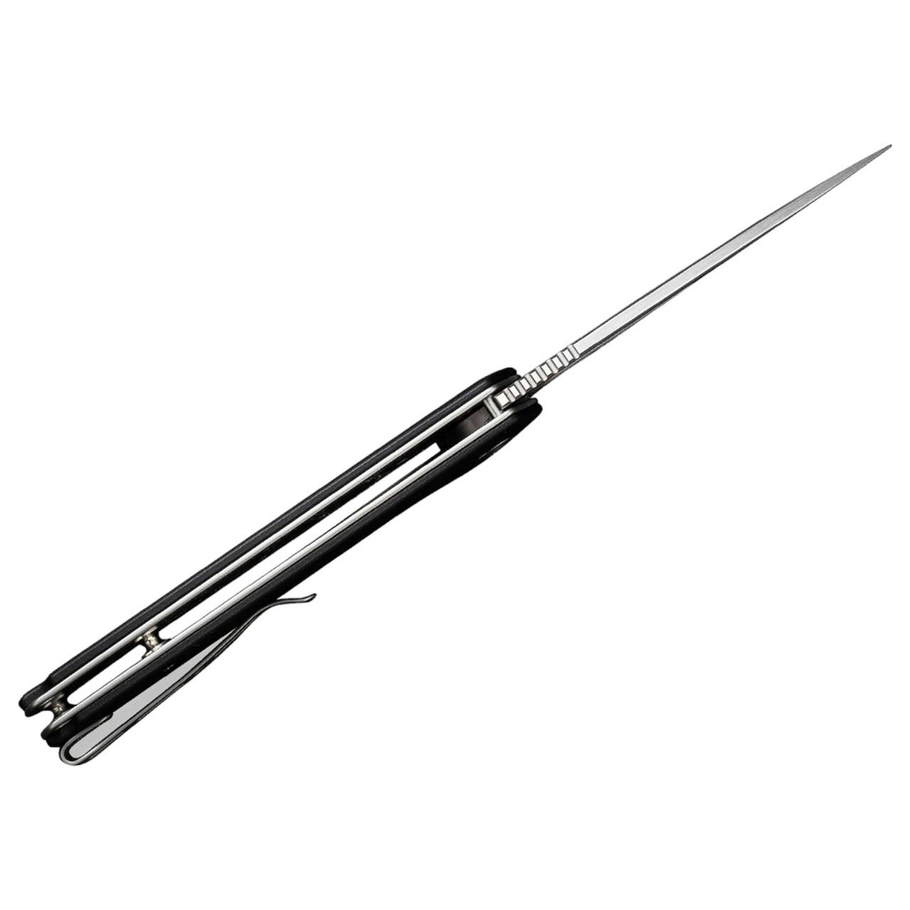 Progresszív kialakítással és önbizalommal teli, a Mims a mindennapi munkáját végzi. A zsebkés ügyes lazasággal oldja meg a nehéz vágási feladatokat, például a kartondobozok átvágását, a 9Cr18MoV anyagból készült golyóscsapágyazott, szaténozott drop-point pengével, amely flipperrel vagy hüvelykujjas csappal nyílik, és a liner lock segítségével záródik. A texturált fekete G10 markolat kiváló fogást biztosít. A megfordítható tip-up klipsz és a zsinórlyuk garantálja a hordozási lehetőségek széles skáláját.