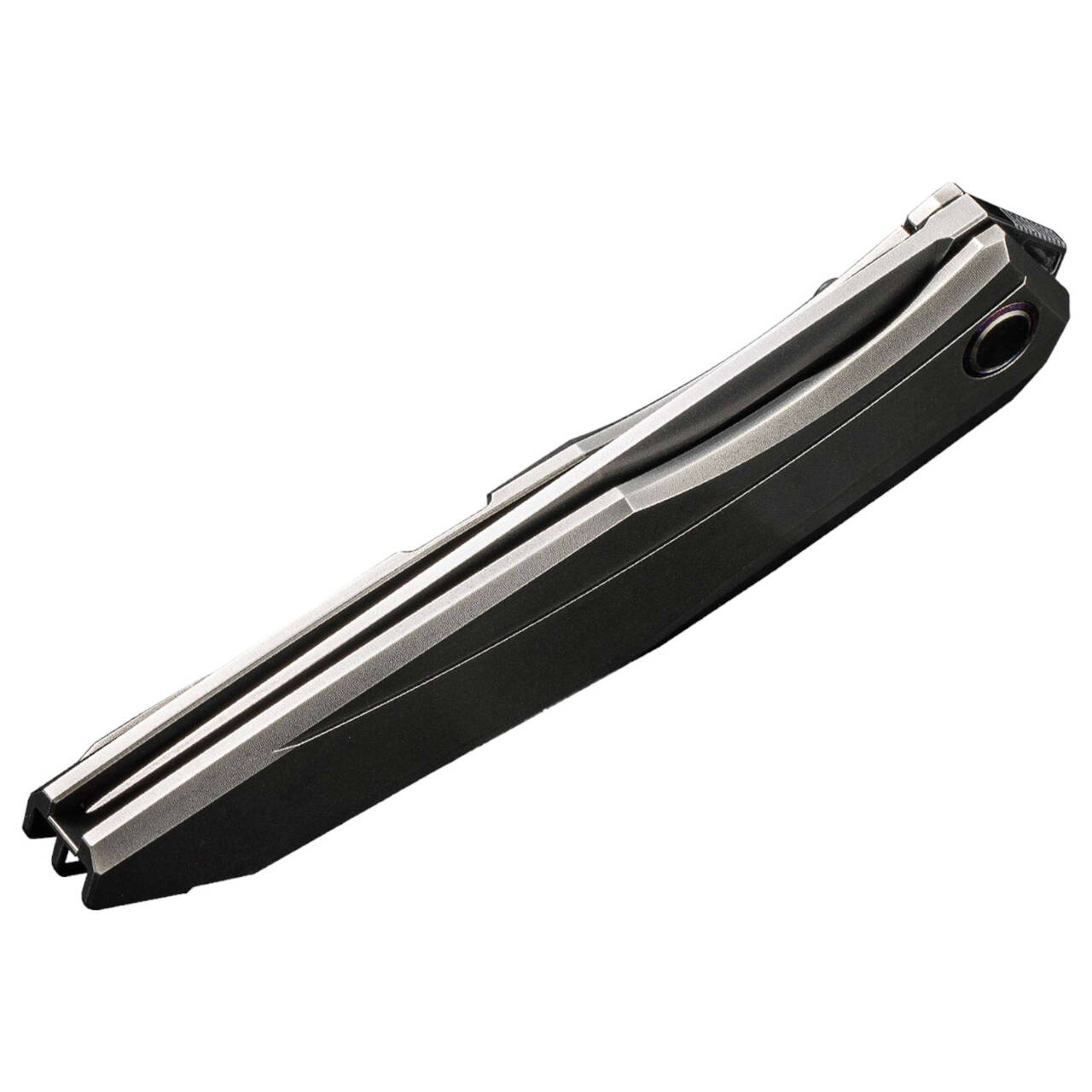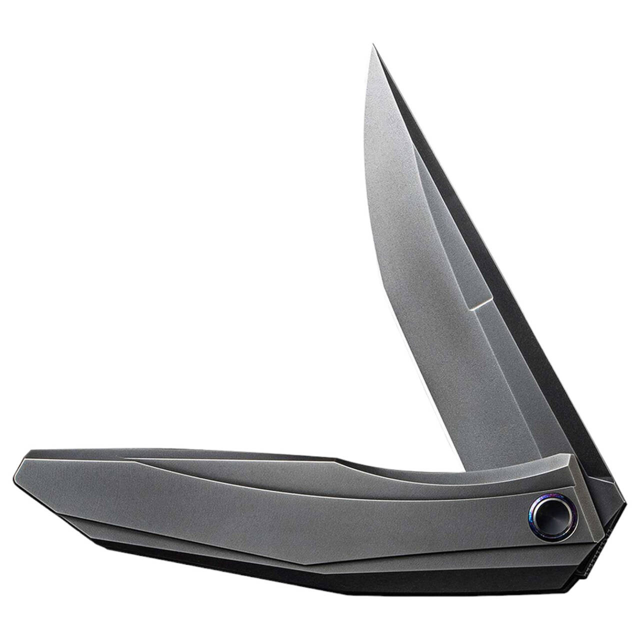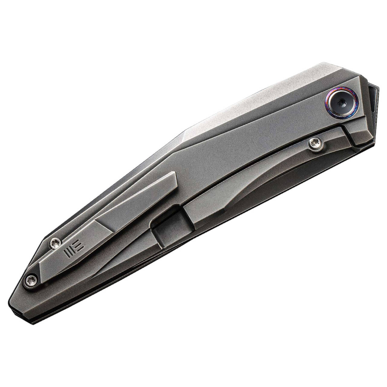 Műszaki precizitás és koncentrált know-how kombinációja - a WE Knife Cybernetic egyesíti az ember és a gép legjobb tulajdonságait, és magabiztosan veszi át a kormányrudat az igényes vágási feladatokban. A CPM-20CV porkohászati pengéje diszkrét, polírozott szürke kivitelű, és flipperrel simán nyílik. A pengét a szürke titán markolatba integrált, megbízható reteszelés biztosítja. A markolaton és a pengén található világos élek kiemelik a zsebkést, és gondoskodnak a rendezett megjelenésről. Tip-up klippel (r).