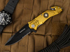 A robusztus Magnum Air Force Rescue egy megbízható mentőkés, amely számos praktikus funkciót ötvöz, és vészhelyzetben életeket menthet. A 440A anyagból készült, fekete bevonatú, fordított tanto pengéje részben fogazott éllel van ellátva, és rugós flipperrel nyitható. A stabil bélészár nyitott állapotban reteszeli a pengét. Az olívaarany eloxált alumínium markolat mindig biztonságosan fekszik a kézben, és részletes katonai emblémával van ellátva. Üvegtörővel, övvágóval és praktikus klippel (tip-down/r) szállítjuk.