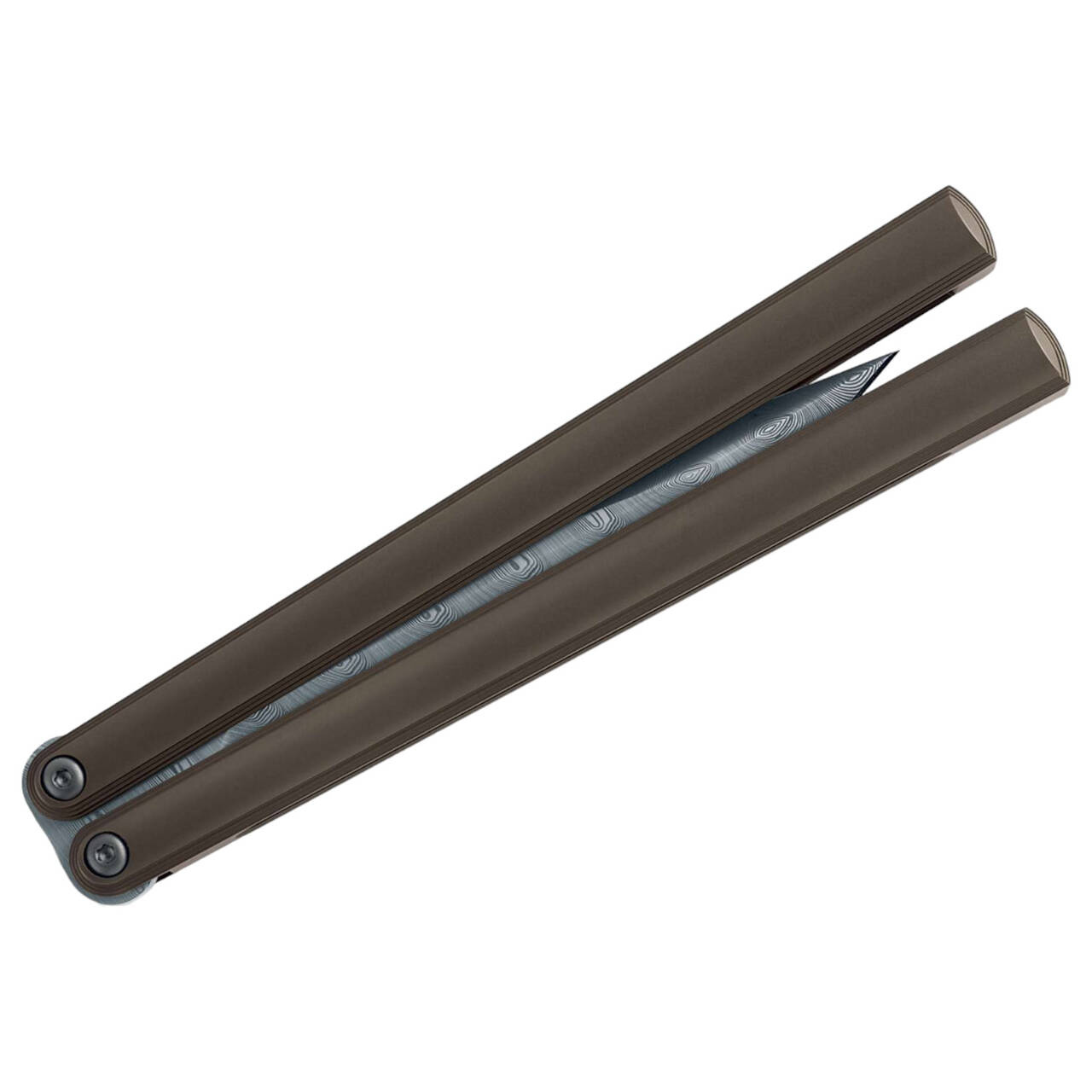 A Fox PHI a filippínó Balisong kések gyökereit veszi fel, és Vincenzo Fiore tervező modern értelmezését kapja. Ezekre a "Butterfly"-nak is nevezett késekre jellemzőek a 180°-ban elforduló markolat felületek, amelyek a Fox PHI esetében a kiegyensúlyozott súlyelosztás jegyében bronzszínű titánból készültek, és nem rendelkeznek a szokásos kör alakú mélyedésekkel. A markolat végén található szokásos biztosítótű hiánya szintén rendezett képet biztosít, így a kés elegánsan karcsúvá válik. A penge esetében a PHI a Damasteel nemes Super Dense Twist Damascus nemes anyagára támaszkodik, amely a nagy kopásállóságnak és szívósságnak köszönhetően rendkívüli megbízhatóságot ígér vágás közben.