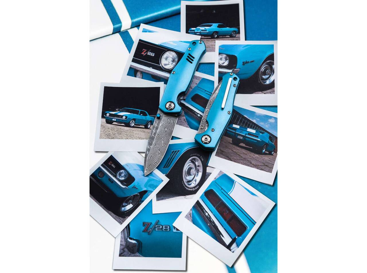 Boker a Camaro Z28 formatervét idézi és feleleveníti a legendát. Az eredmény több mint egy kés. Életérzés, a méltóságteljes országúti utazás a V8-as motor pezsgő hangjával a végtelennek tűnő autópályán, a kanyonon átcsapó, a lelket melengető, szelíd napsugarakkal. Felejthetetlen pillanatok a mindennapok nélkül - akárcsak a rendkívüli Boker 1969 Z28-Damascus. Az olasz tervezővel, Tommaso Rumicival együttműködve egy egyedülálló "izomkés" született, amely a Camaro Z28 jellegzetes karakterjegyeit egyesíti formában és erőben. A Chad Nichols által kézzel kovácsolt elegáns damaszkuszi csepphegyű penge 80 rétegű Tread-mintával emlékeztet az izomautó ferde motorháztető indukciós motorháztetőjére. Ehhez a Camaro felső A-karjának részeit használták fel a pengéhez, amely a kék hüvelykujjcsap segítségével simán nyílik, míg a harapós rozsdamentes acélból készült linerlock megbízhatóan rögzíti a kést. Egy eredeti modell színelemzése alapján, kifejezetten a Boker számára készült a "Le Mans Blue" színű, finoman hangolt lakkozás az alumínium markolathoz, amely nosztalgikusan értelmezi a karosszéria vonalait, és izgalmas részletekkel rukkol elő. A notchback, a kis hátsó spoiler és a hátsó szárnyakon lévő, kopoltyúszerű légbeömlők gyönyörűen beépültek a késbe. A penge tengelycsavart szeretettel ihlette az izomautókon gyakran használt felnik, míg a tömörből maratott, egyenes vonalú, rozsdamentes acélból készült klipsz a krómozott kilincsekre emlékeztet. A szállításhoz kiváló minőségű lebegő kijelző, rengeteg nyomaték és enyhe szellő jár a hajában. Kézzel készült a solingeni Boker manufaktúrában.