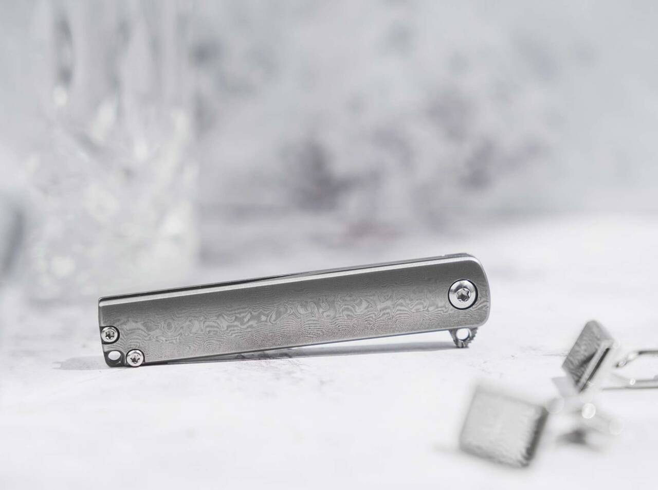A rendkívül praktikus Boker Plus Gemma Damascus Damascus kompakt úri késként győzi meg a közmondásos mellényzsebben. A penge mellett a markolat és a klipsz is elegáns damaszkuszból készült, így a zsebkés igazi gyöngyszem. A golyóscsapágyazott penge 110 rétegből áll, flipperrel nyitható és megbízhatóan zárható egy erős framelockkal. Lanyardlyukkal és levehető klippel (tip-up/r) szállítjuk.