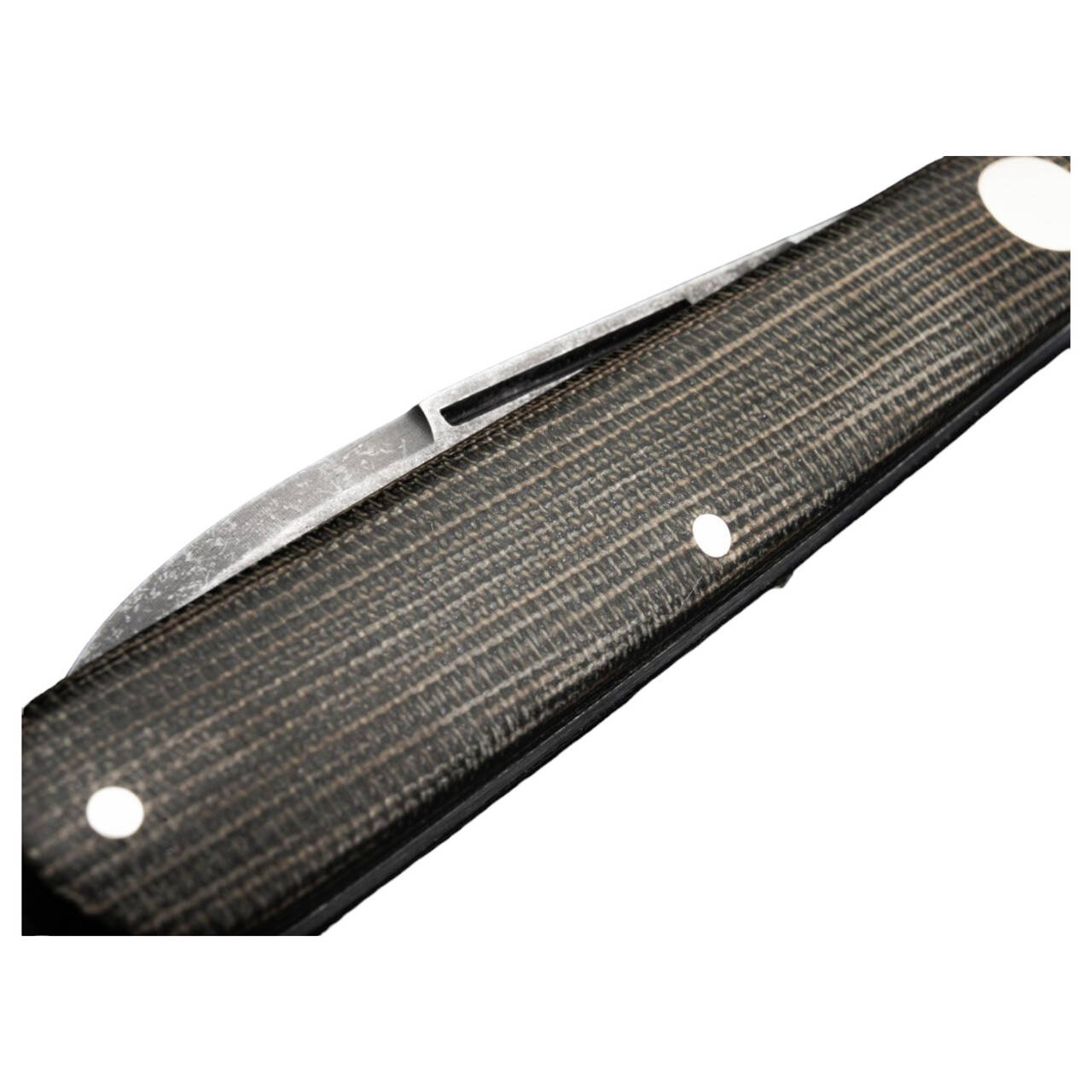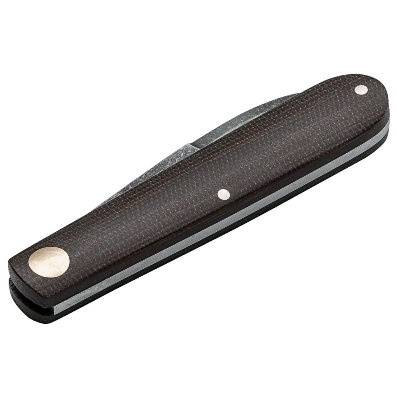 Az újonnan értelmezett Boker Barlow Prime integrált kivitelű változata nélkülözi a jellegzetes bolerókat, helyette zöld Canvas Micarta-ból készült, folytonos, kellemesen kontúrozott markolatú pikkelyekkel van ellátva. A könnyűszerkezetes konstrukció így teljesen nélkülözheti a további fém béléseket. A penge O1 nem rozsdamentes szénacélból készült, és speciális savas mosással készült. Modern, hosszúkás ricassóval van ellátva, és szögbevágással nyitható. A slipjoint zsebkés működési biztonságát a nyitáskor és záráskor 90 fokos reteszelés növeli. A díszítő szegecsek sárgarézből készültek. Kiváló minőségű filc tokkal a tároláshoz. Kézzel készült a solingeni Boker késmanufaktúrában.