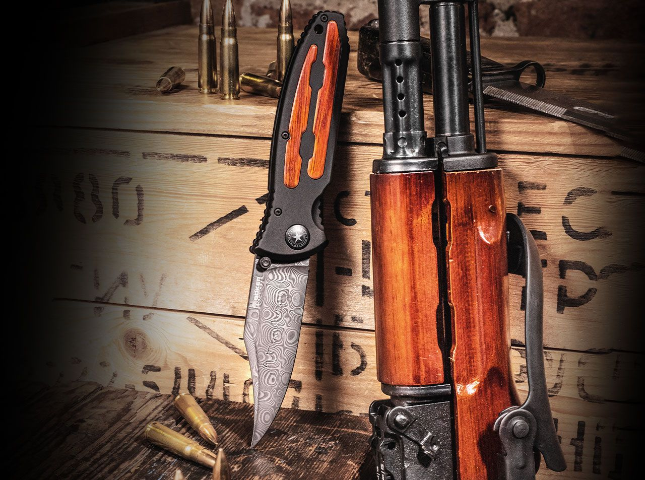 Mihail Kalasnyikov 2002-ben személyesen látogatta meg a Boker manufaktúrát Solingenben, és hivatalosan is bemutatta a Boker Kalasnyikov késcsaládot a nagyközönségnek. Több mint 70 évvel az AK-47-es hadrendbe állítása után most bemutatjuk a késcsalád egy igazán kivételes, különleges kiadású modelljét, és ismét tisztelgünk az ő zseniális mérnöki teljesítménye előtt. A Boker Kalashnikov Bayonet Damascus egyedi damaszkuszi pengével van ellátva, amely az egykori szovjet hadsereg GRAU indexe szerinti 6Ch3 és 6Ch4 szuronyok acéljából készült, és Kalasnyikov tábornok aláírásával van díszítve. A Chad Nichols által készített rozsdamentes damaszkuszi 80 rétegből áll, és kézzel kovácsolták a Virus mintázatban. Szokatlanul bonyolult mintázatot mutat, amely egy nagyon ellenőrzött kovácsolási folyamat eredménye. A bajonettektől átvett pandúrheggyel ellátott penge a hüvelykujjas szegecs segítségével nyílik, és egy erős linerlock zárja.