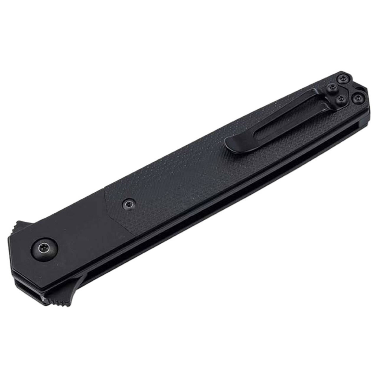 A Lucas Burnley által tervezett Boker Plus Kwaiken a 21. század egyik legbefolyásosabb formatervezése. Letisztult és praktikus formájával a modern zsebkés igazi ikonná vált. A pontos vonalak és a karcsú kialakítás, amely csukott állapotban mégis befogadja a teljes pengét, teljesen egyedülálló. A jól ismert Burnley Kwaiken Classic továbbfejlesztése, egy fix pengéjű kés, szintén a neo-japán stílusban. A Kwaiken Symban az oregoni késtervező a szimmetria és a harmónia gondolatát a japán filozófiával összhangban hozza. A flipper egy parádés elemre hasonlít, és biztonságos, intuitív kezelést tesz lehetővé. A linerlock, amely az egyik oldalra élezett tőrpengét zárja, golyóscsapágyazott, fekete bevonatú 154CM-ből készült, és ugyanolyan megbízható. Az exkluzív igényt a nemes titán bolerókkal és G10-ből készült markolati pikkelyekkel ellátott markolat hangsúlyozza, amelyek harmonikusan adnak a teljesen fekete késnek egy nagyon különleges megjelenést. A karcsú kialakítás és az exkluzív anyag a Kwaikent nemes kereszteződéssé teszi egy úri mappa és egy taktikai kés között. A tároláshoz egy kiváló minőségű nejlon tokkal szállítjuk. Levehető klippel (tip-up/r).
